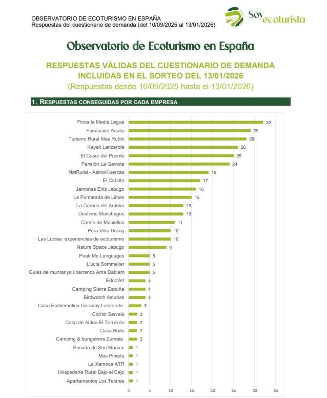 Estamos muy orgullosos de conocer, que en la pasada campaña de #SoyEcoturista, Finca La Media Legua aparece en el primer puesto gracias a las contribuciones de nuestros clientes, que con su participación en una breve encuesta del Observatorio de Ecoturismo de España nos ayudan a conocer más de cerca los destinos, a la vez que participan en el sorteo de un viaje al destino del Club de Ecoturismo de España que ellos elijan. ![]()